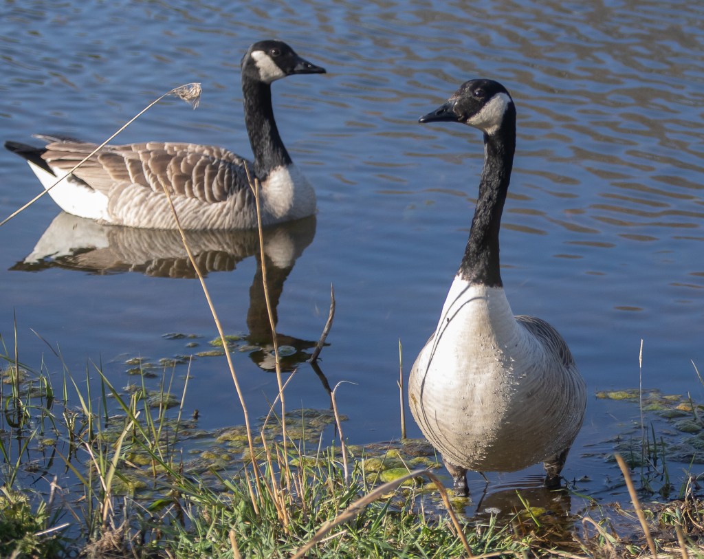 A pair of Canada Geese have arrived on the big pond, they arrived on Tuesday morning and left by lunchtime. I thought they must have stopped for a rest on there way elsewhere but no they are back again. they must like our little pond! Spending most of their time on our Dunces Corner Pond island.