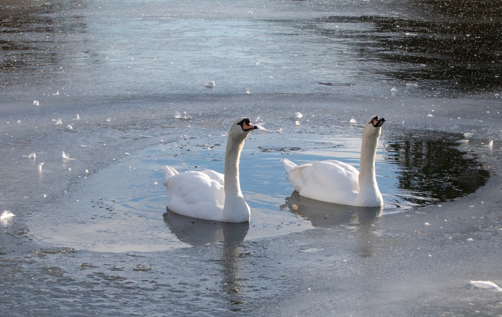 It has certainly been a chilly few days and as a consequence almost all our Mallards have flown, probably down to the Wansbeck. Our two swans have decided to sit it out.