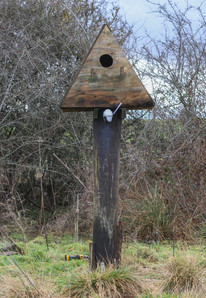 The white object on the front of the box is a solar powered camera, which will be relocated, in case the owls are camera shy!