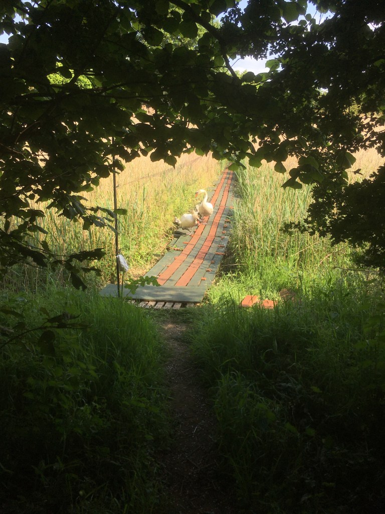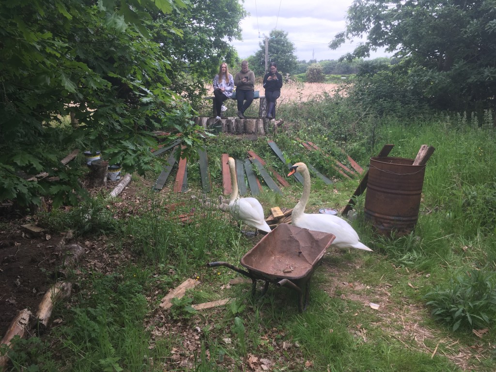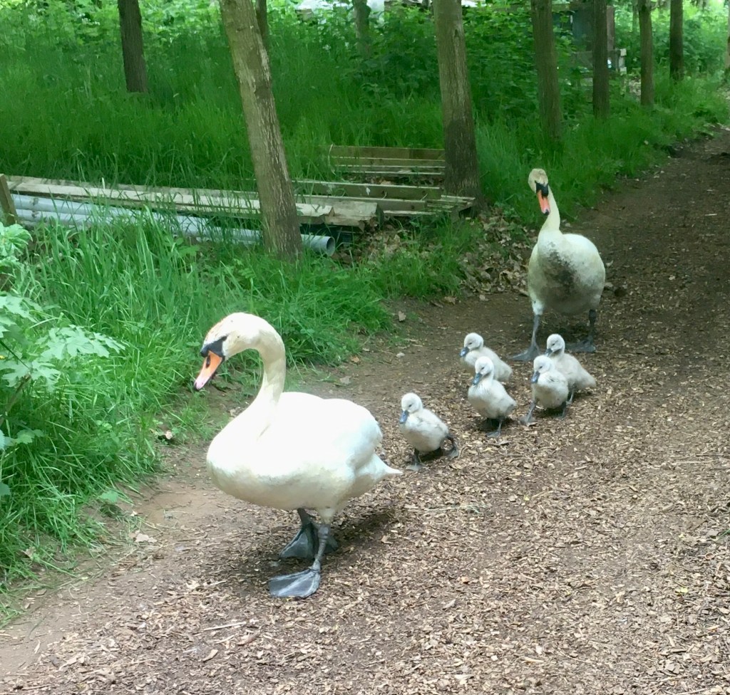 So Lila, Lara and Jake gave the boardwalk a makeover. An unexpected obstacle was our swan family that interrupted work on several occasions as they passed through the work area!